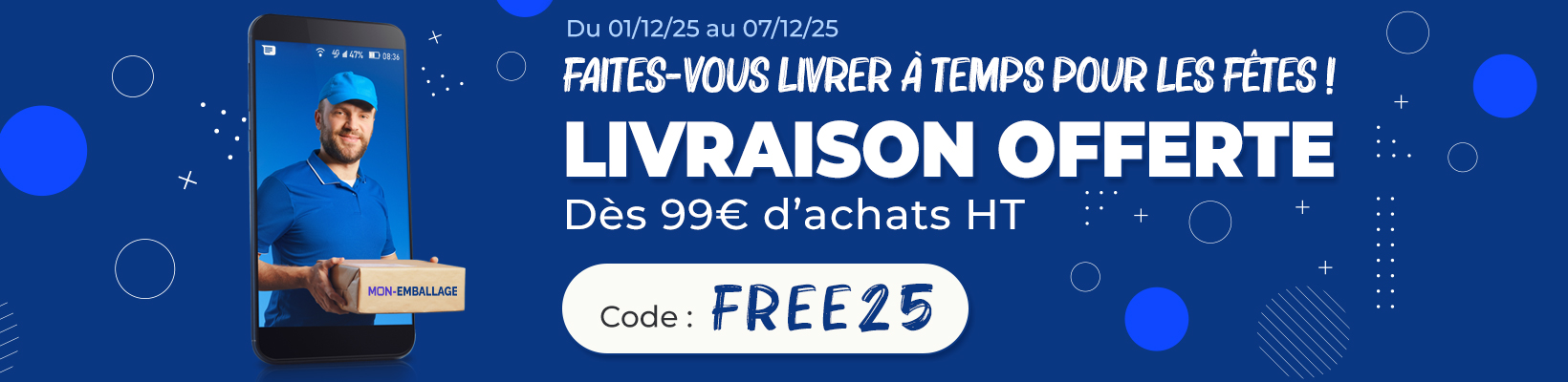 En achetant sur Mon-emballage, bénéficiez d'une livraison rapide en moins de 72 h sur les références en stock. De plus, notre service client reste à votre entière disposition pour répondre à vos éventuelles demandes ou échanger sur un sujet précis. Nous garantissons ainsi un service de grande qualité et un traitement rapide de vos commandes.