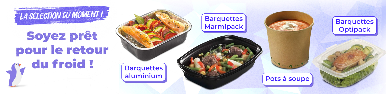 De la caissette papier à la barquette plastique, des couverts jetables au sac fruits et légumes, découvrez notre sélection de produits disponibles en gros.