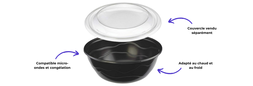 Ces emballages alimentaires se distinguent par leur caractère réutilisable, une qualité essentielle pour les professionnels soucieux de réduire leurs coûts et impact environnemental. Fabriqués en plastique PP de haute qualité, les Bowlipack sont conçus pour supporter plusieurs utilisations, autant froide que chaude, sans altération de goût sur vos préparations.