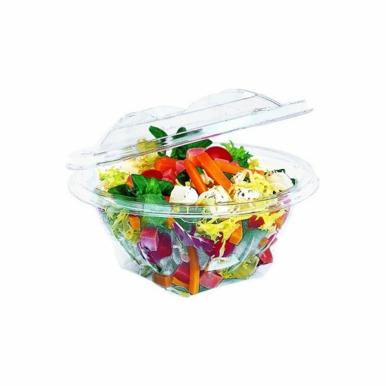 Ce petit bol salade 250 ml est recommandé pour les professionnels de la restauration rapide et de la boulangerie. Il est parfait pour conditionner vos salades et desserts à emporter. Hermétique, il est muni d'un couvercle intégré déchirable pour une grande simplicité d'utilisation. Aucun risque que la vinaigrette ou la sauce salade ne s'échappe. Ces bols pour salade jetables sont vendus avec leurs couvercles et sont empilables pour un gain de place en réserve de restaurant. Vous pouvez munir ces boites salade en plastique d'un kit couverts en sachet très apprécié des clients qui déjeunent sur le pouce.