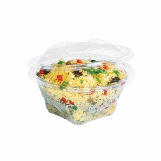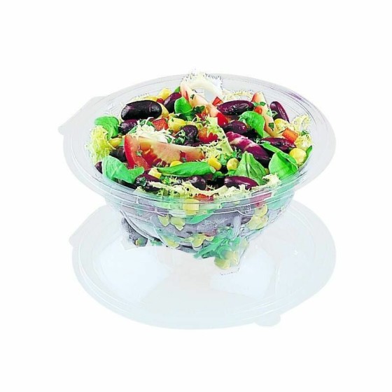 De très grande taille ce bol salade de 1000 ml est recommandé pour les professionnels de la restauration rapide. Il permet de visualiser les préparations froides que vous vendez grâce à côté transparent. Hermétique, il est muni d'un couvercle intégré déchirable pour une grande simplicité d'utilisation. Aucun risque que la vinaigrette ou la sauce salade ne s'échappe. Il est également empilable pour un gain de place en réserve de restaurant. Vous pouvez munir ces boites salade en plastique d'un kit couverts en sachet très apprécié des clients qui déjeunent sur le pouce.