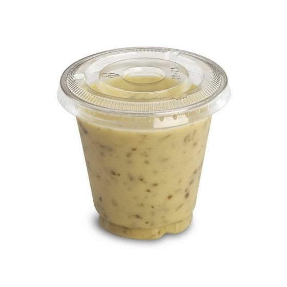 Ce petit pot à sauce d'une contenance de 160 ml est en plastique PETE transparent (polyéthylène téréphtalate). Cela permet une vision rapide du contenu de ces pots pour sauce. Ce plastique est apte au contact alimentaire direct. Les professionnels des métiers de bouche peuvent aisément préparer à l'avance les sauces de leur sandwich ou salades pour les stocker en réfrigérateur et ainsi gagner un temps précieux au moment de la commande.