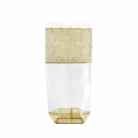 Sachets confiseur transparents, avec décoration DENTELLE OR et avec un fond carton idéal pour emballer biscuits, dragées, bonbons... etc