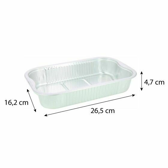 Cette barquette aluminium, avec ses dimensions de 26,5 x 16,2 x 4,7 cm, offre l'espace idéal pour des portions normales (environ 2 parts). Sa couleur en aluminium assure une diffusion uniforme de la chaleur, assurant une cuisson parfaite de vos plats, des bords aux centres. Cette barquette en aluminium peut passer au four, au congélateur et au micro-ondes (attention cependant de ne pas coller les bords à la paroi du micro-ondes).