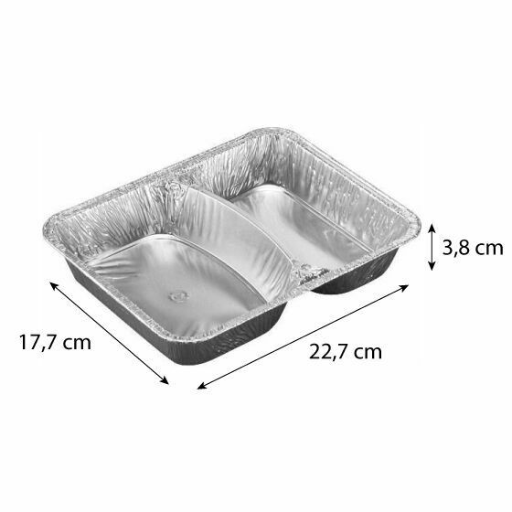 - Possibilité de créer des menus prêts à servir grâce aux 2 compartiments de cette barquette en aluminium