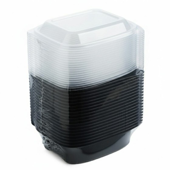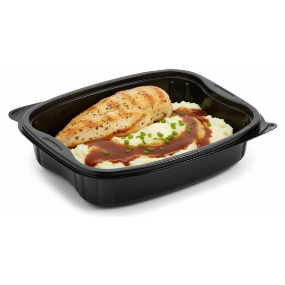 Les barquettes plastique noires 900 ml sont idéales pour vos plats chauds pour une personne. Elles allient design, élégance et praticité. Cette barquette alimentaire est parfaitement adaptée au micro-ondes et est totalement hermétique grâce à son couvercle.