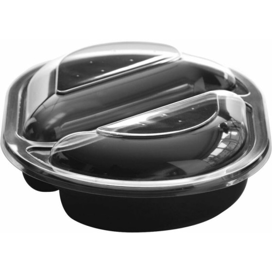 Barquette plastique CPET 2 compartiments noire avec couvercle spécial four 900 ml - par 40