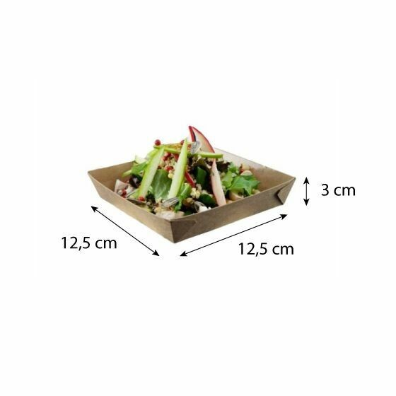 Sublimez vos créations culinaires avec nos assiettes carton carrées avec rebord 12,5 x 12,5 x 3 cm, conçues spécialement pour les professionnels du snacking, traiteurs, restaurateurs, organisateurs d'évènements, collectivités. Disponibles en couleur kraft brun, ces assiettes jetables carrées allient esthétisme et praticité. Ces dernières offrent une solution idéale pour la présentation de plats cuisinés, desserts ou divers aliments lors de buffets traiteur par exemple.