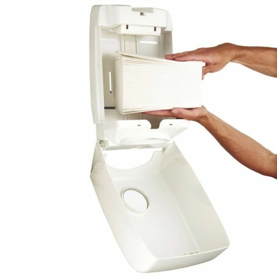 Distributeur essuie-mains professionnel blanc : Discret et efficace